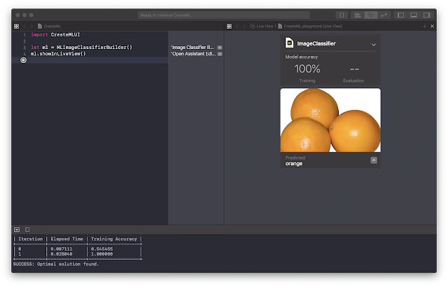 when you run the code, MLUI will appear beside your editor, we use the MLUI to put our data training. so in the next step, you need to prepare the training data. in this tutorial I have collecting training data about some fruits, apple and orange. you could download it here